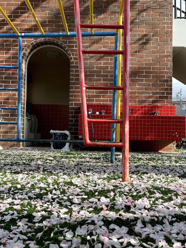 保育園の園庭が桜でいっぱいになっていたので、パチリ。これで今年の桜納め、です。